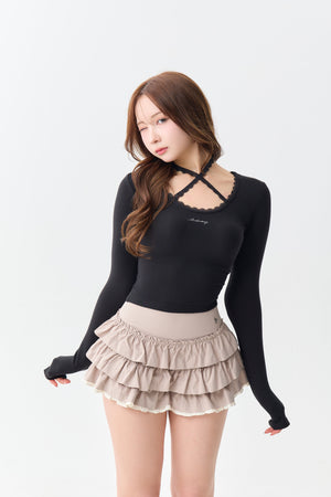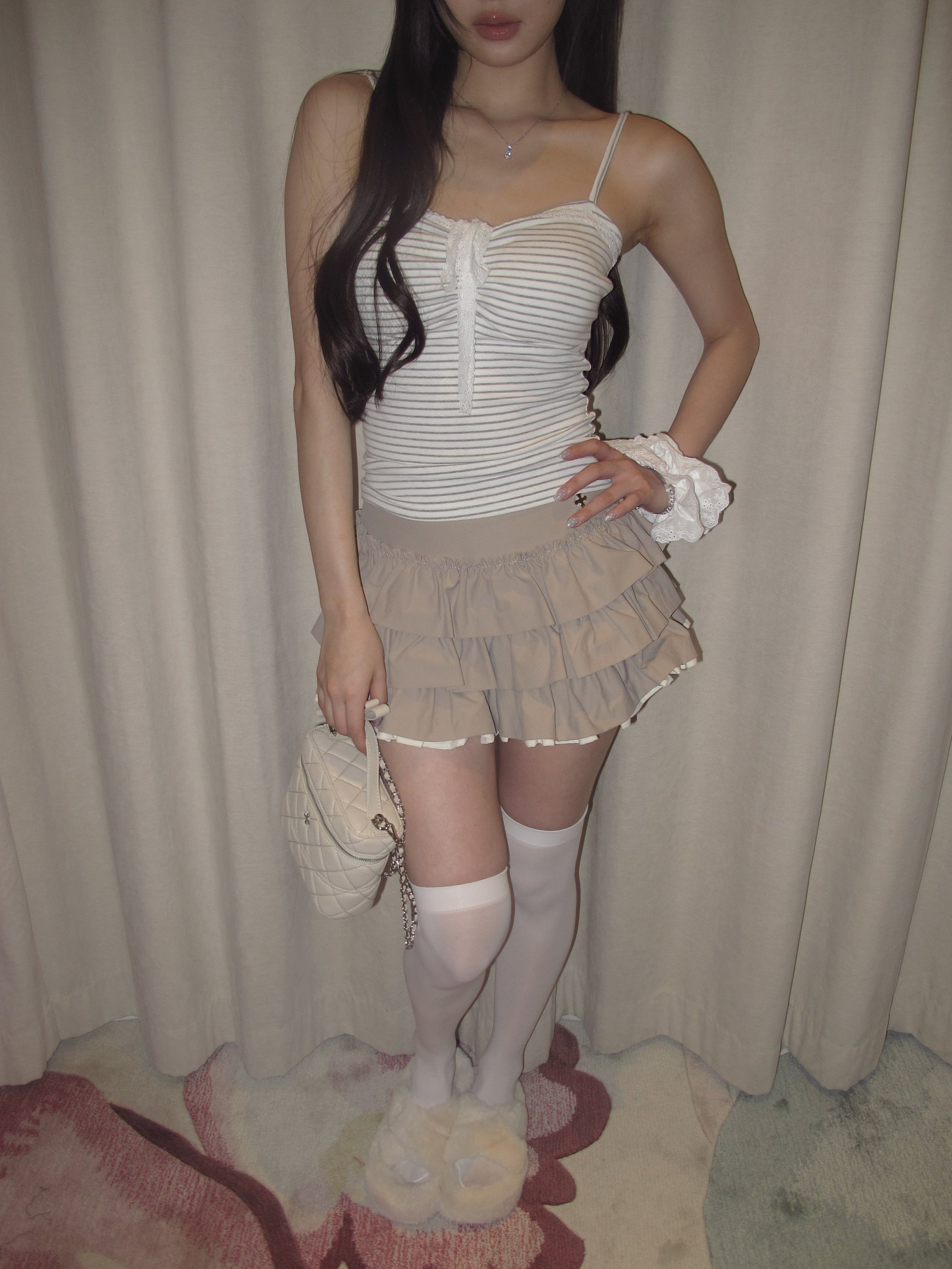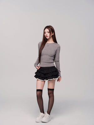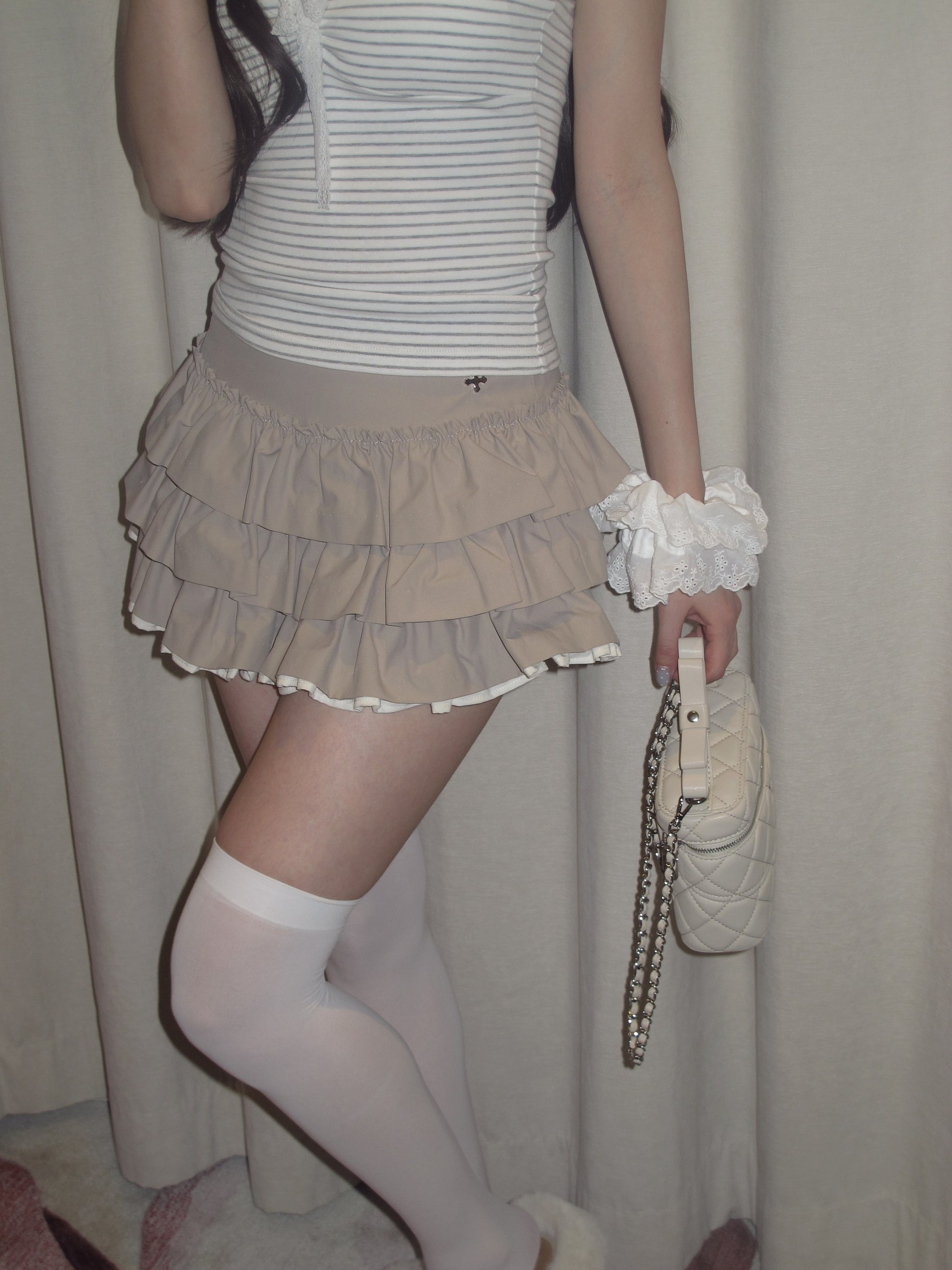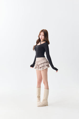 (PRE:check) Charm Frill Culotte Mini Skirt