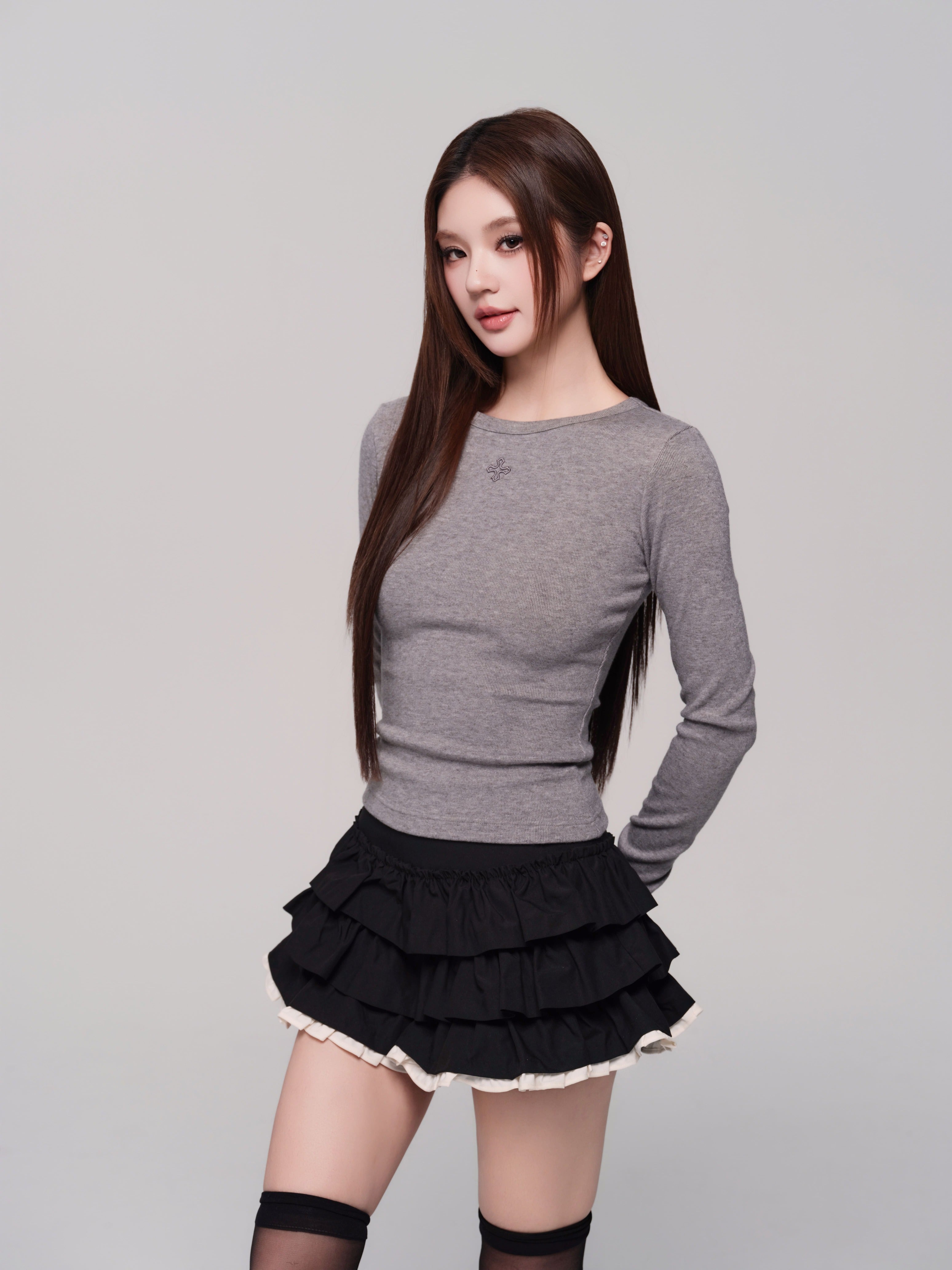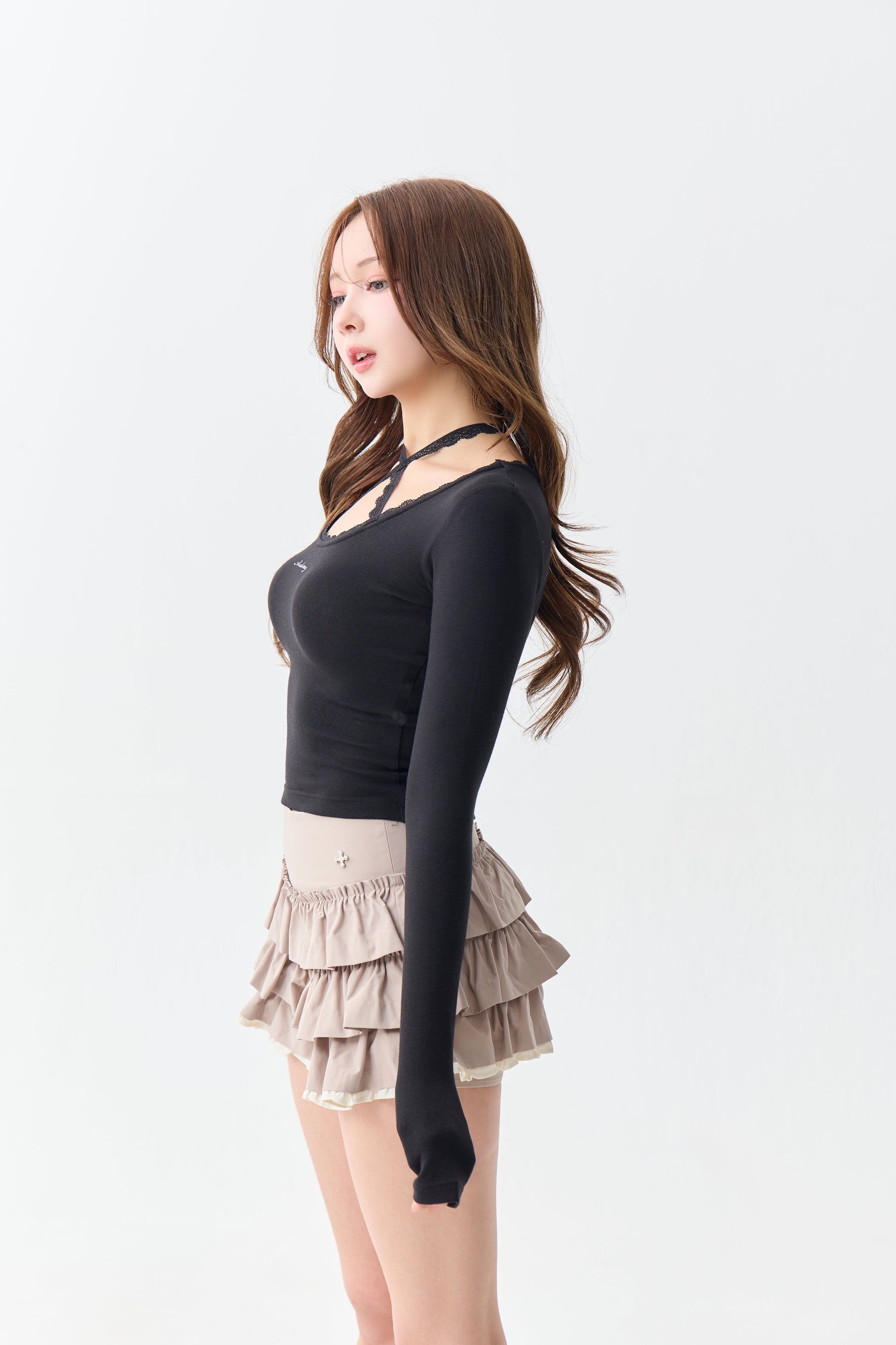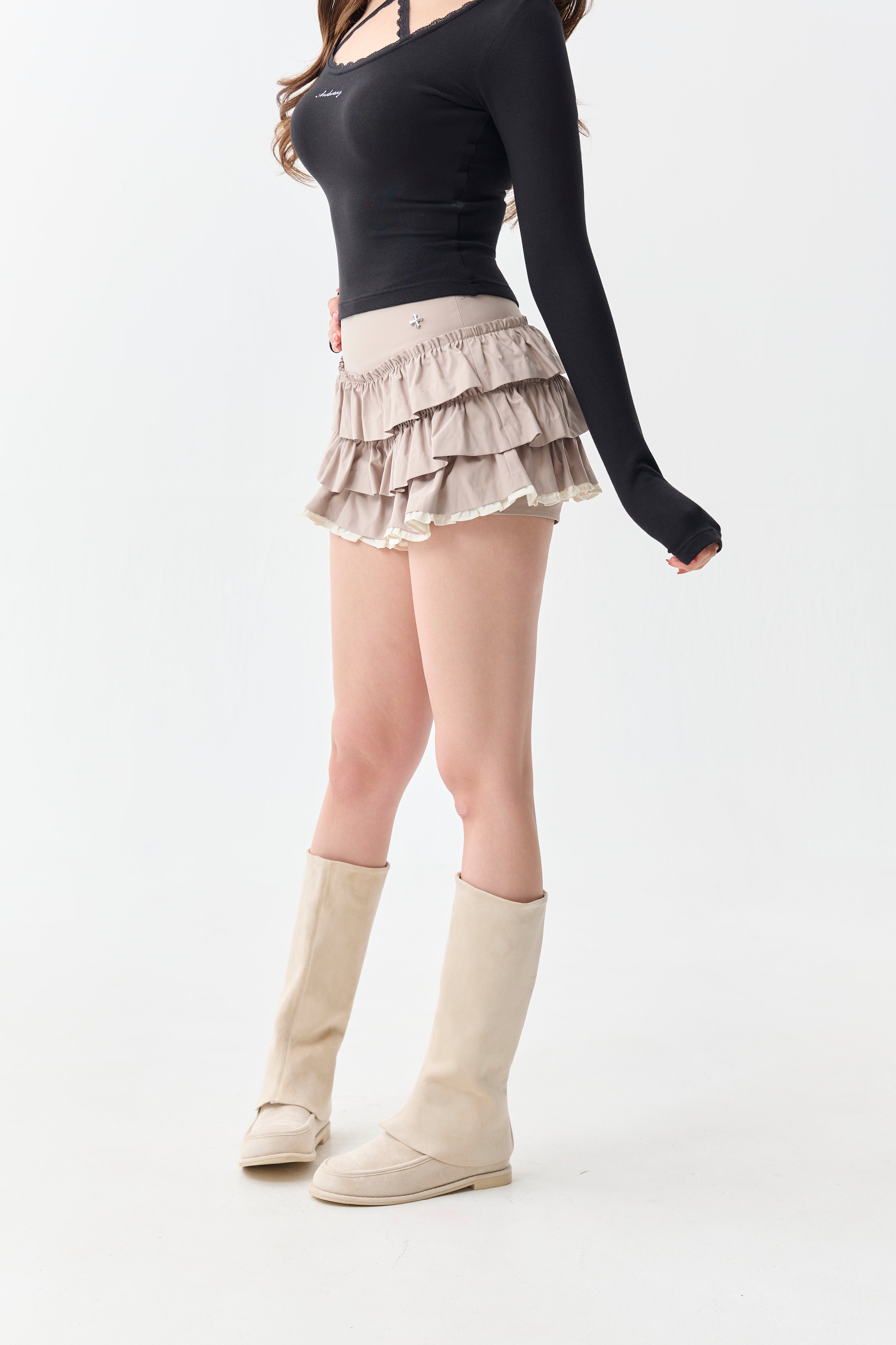(PRE:check) Charm Frill Culotte Mini Skirt